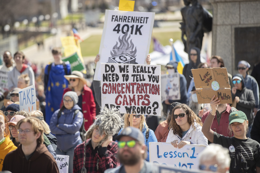 - Estas protestas siguen a las manifestaciones del 5 de abril que, celebradas bajo el lema '¡Manos fuera!', se desarrollaron en más de 1.200 puntos de los 50 estados del país. Entonces, más de 150 grupos, entre ellos organizaciones de derechos civiles, sindicatos, defensores de la comunidad LGBTQ+*, veteranos y activistas electorales, participaron en las concentraciones.